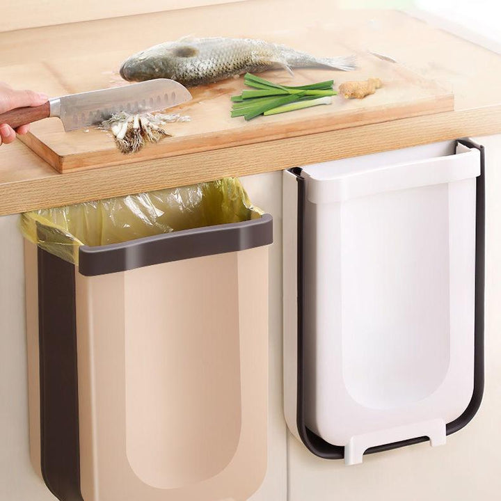 La basurera plegable se puede colgar sin problema en el gabinete de la cocina, el gancho se agarra hasta un espesor de 2.2cm. La Basurera puede proporcionarle un lugar simple y conveniente para tirar basura y desechos de cocina para mantener su estación de cocina limpia y ordenada.