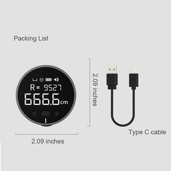 La cinta métrica se carga fácilmente con un cable USB incluido, asegurando que siempre esté lista para usar.