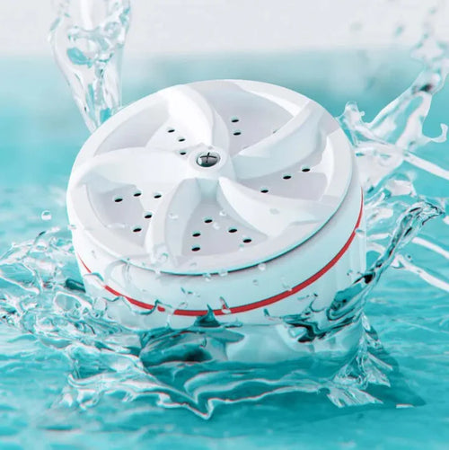Con una potencia similar a la de un lavarropas convencional, esta mini lavadora cabe fácilmente en baldes y fregaderos, permitiéndote lavar tu ropa de forma eficiente y conveniente en casa.
