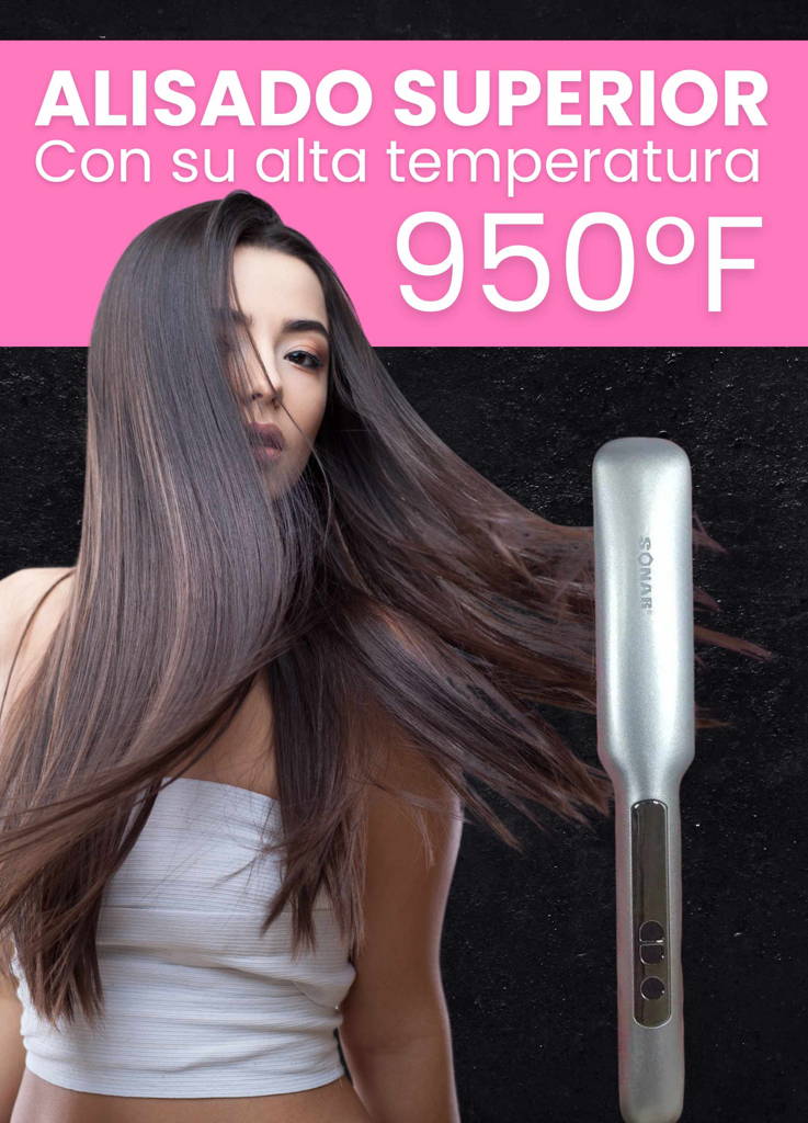Su control de temperatura hasta 950°F asegura resultados profesionales en casa, perfecta para cualquier estilo y tipo de cabello.
